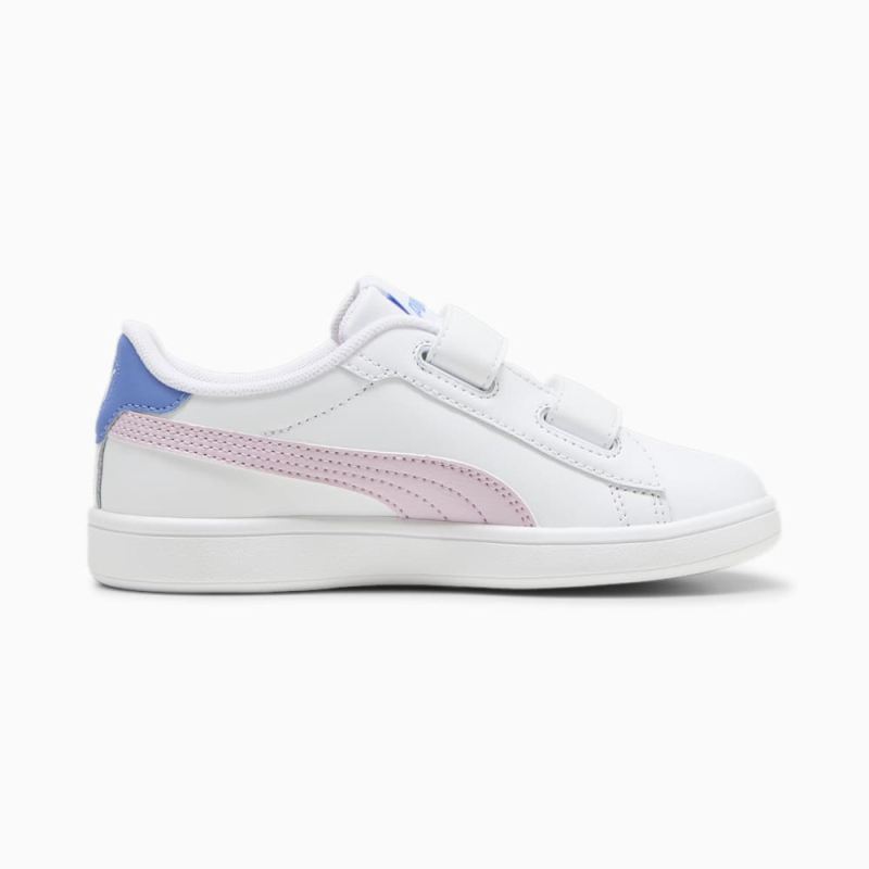 Puma | Boys Smash 3.0 Leather V Little Kids Sneakers - White-Grape Mist-Blue Skies