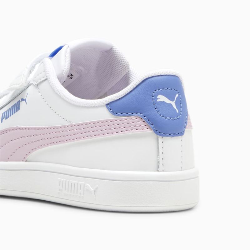 Puma | Girls Smash 3.0 Leather V Little Kids Sneakers - White-Grape Mist-Blue Skies