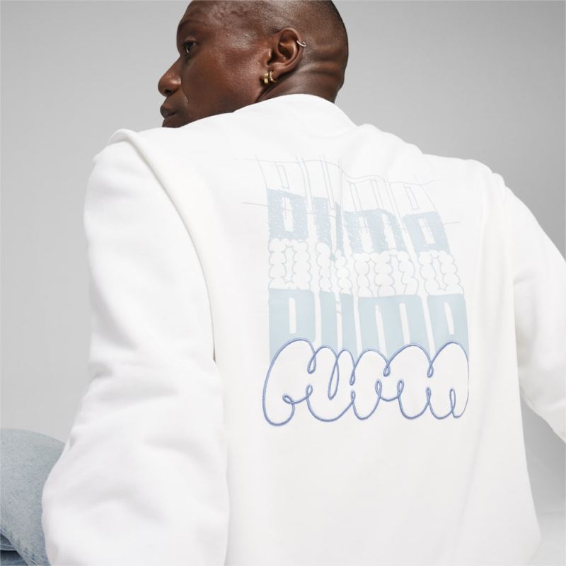 In this PUMA BRAND LOVE crew, your love for PUMA will be plain for all to see. The crew features a fun graphic on the back with a number of overlapping PUMA designs. PUMA forever!
