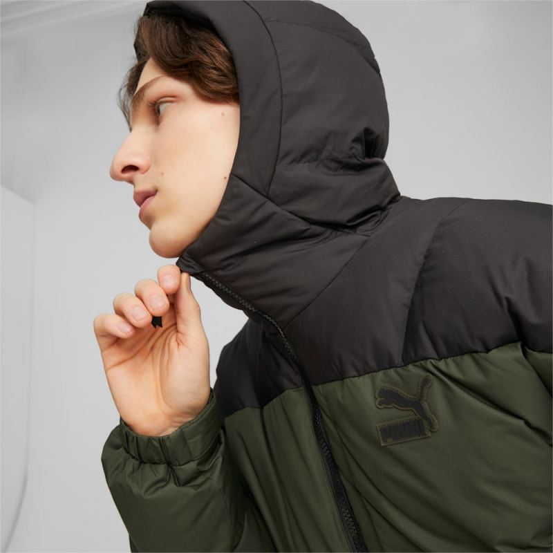 Cold outside Not a problem when you've got on the PUMA Down Jacket. It's warm-yet-breathable, rain- and wind-resistant and surprisingly light thanks to the warm, duck down filling. Plus, the hood with visor and storm flap will keep you ready for the elements.