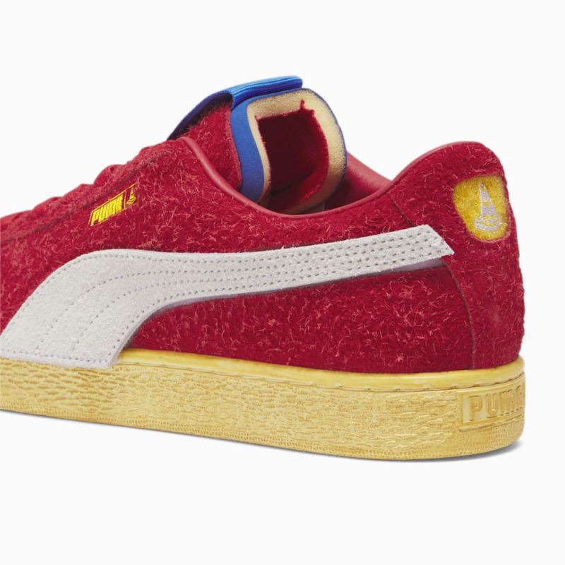 Inspired by the 70's Ferrari Racing retro and vintage style, this collaboration with Joshua Vides brings his hand-painted signature style to daily life for a unique Motorsports look blended into the classic 80's Suede. This style unites Scuderia Ferrari's DNA with a unique fresh design by Joshua Vides.