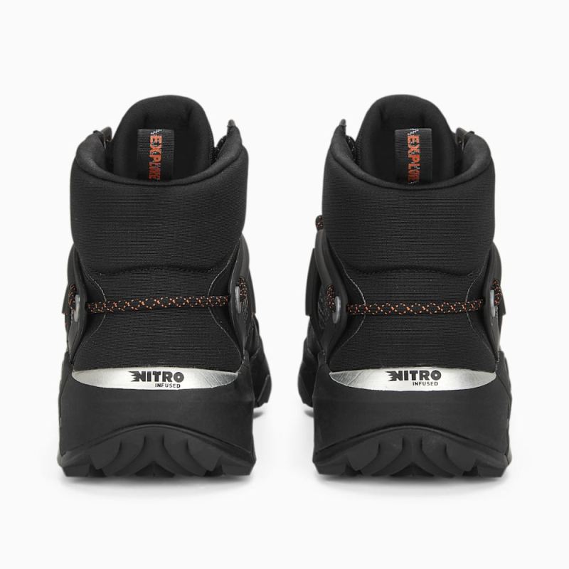 Puma | Men's SEASONS Explore NITRO Mid Hiking Shoes - Black-Silver-Chili Powder