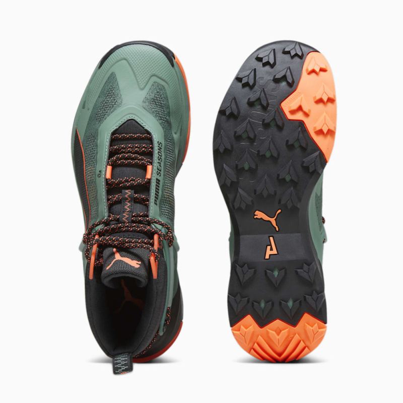 Puma | Men's SEASONS Explore NITRO Mid Hiking Shoes - Eucalyptus-Black-Neon Sun
