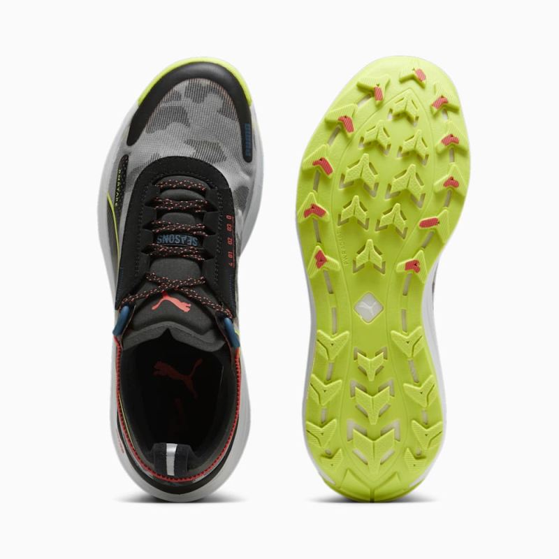 Puma | Men's SEASONS Voyage NITRO 3 Running Shoes - Black-Lime Pow-Active Red