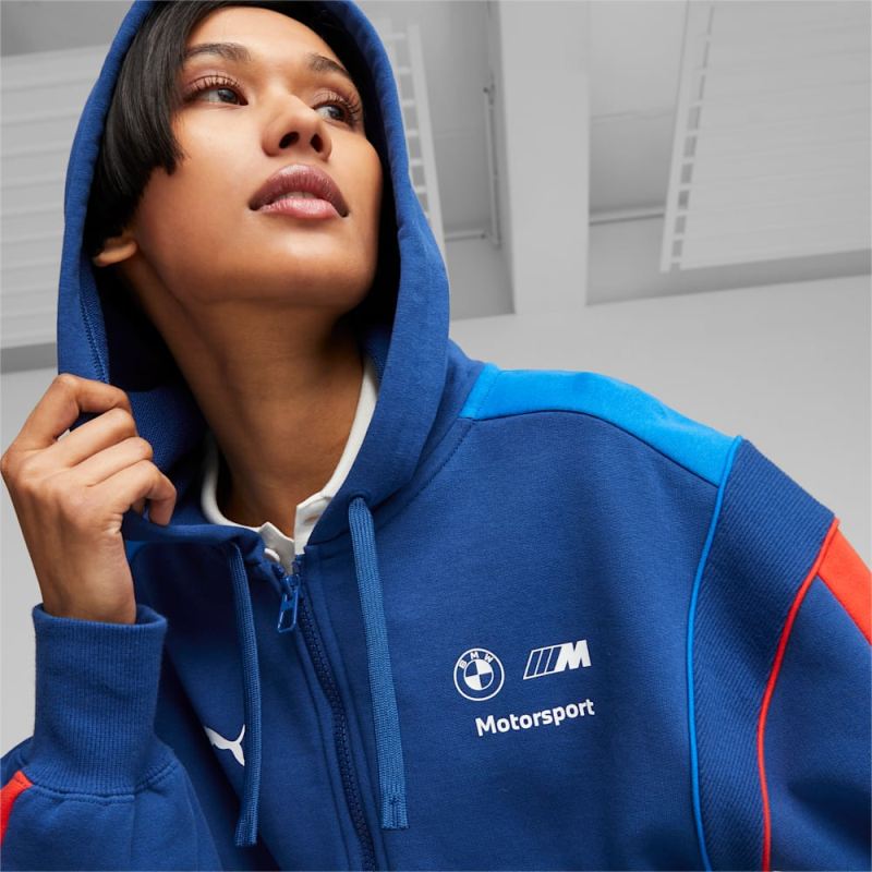 Designed in collaboration with BMW M Motorsport, this race day-ready layer is part of the MT7 collection that blends PUMA's timeless T7 silhouettes with Motorsport flair. The snug hood and cropped fit feature MT7 stripes and branded details from the marque.