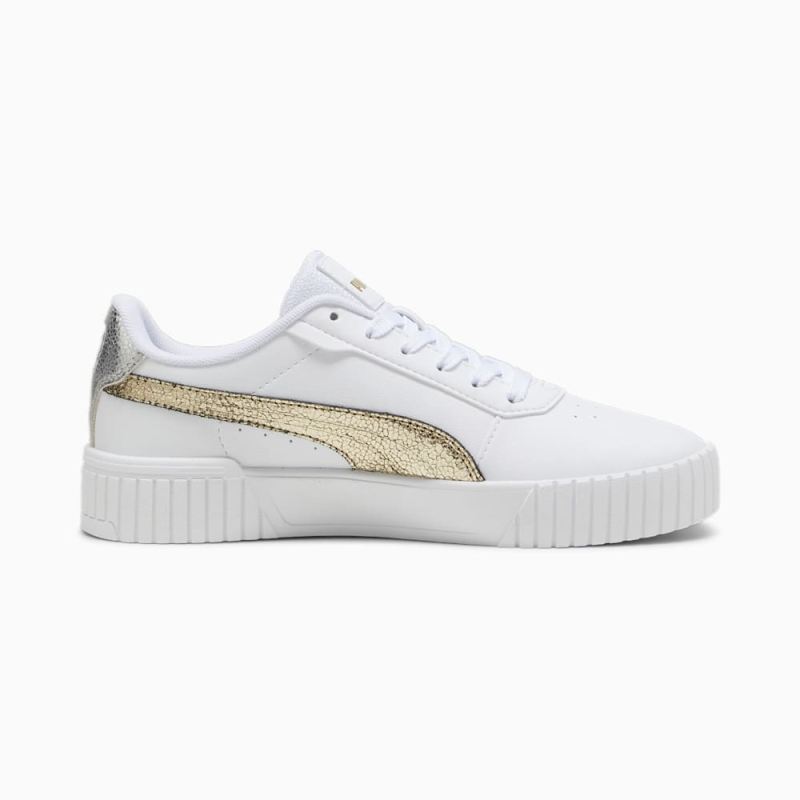 Puma | Women's Carina 2.0 Metallic Shine Sneakers - White-Gold-Silver