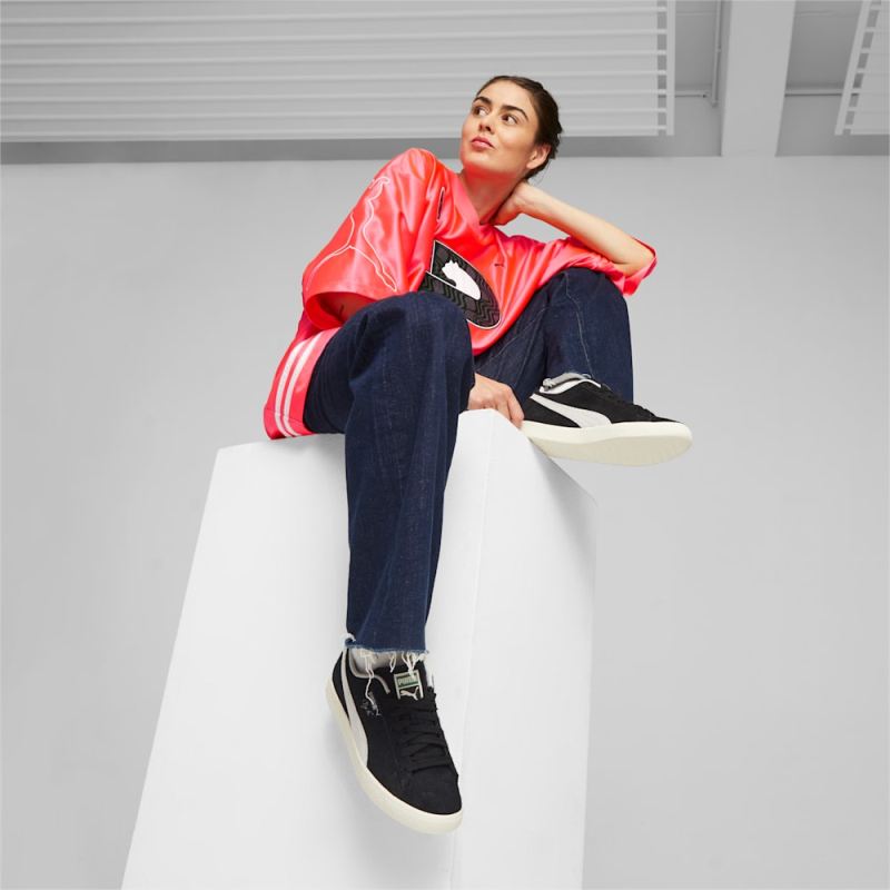 Puma | Women's Clyde Hairy Suede Sneakers - Black-Frosted Ivory