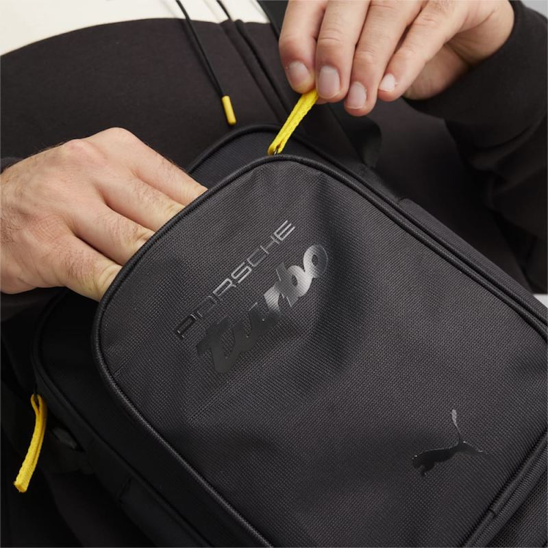 Bring what's necessary wherever you go with this Porsche Legacy portable. The bag has a 3d raised silicon printed Porsche Turbo and PUMA Cat logo and a front pocket with external zip for extra items.