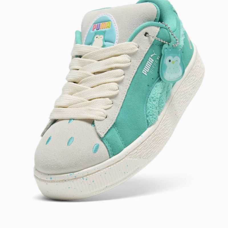 The Suede XL is bursting with personality. In the PUMA x SQUISHMALLOWS collab, this high-energy sneaker is designed after the fan-favorite teal owl, Winston. The upper features Winston's signature colors along with subtle nods to his love for mac and cheese at the heel. These shoes feature a lace charm and the iconic Squishmallows hangtag artwork on the tongue complete with custom collector number.